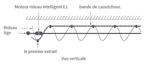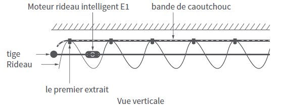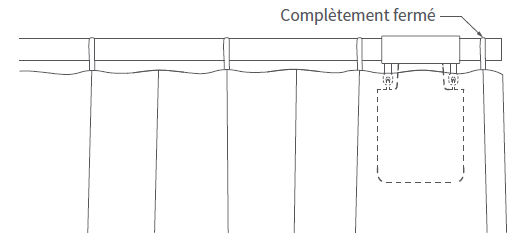 - Tirez le rideau jusqu'à ce qu'il soit complètement fermé et installez le Moteur Rideau sur le rail selon la méthode d'installation des " rideaux à simple face ".