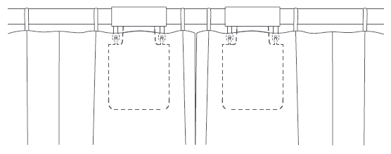 - Veuillez installer la bande de caoutchouc avec les clips sur le rideau selon la disposition de votre rideau comme indiqué ci-dessous.