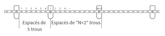 - Réservez 6 trous entre le deuxième et le premier clip, et le nombre de trous entre les autres clip adjacentes est "N×2" (y compris le trou occupé par l'agrafe)